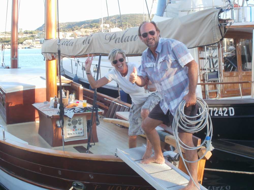 We sailed back into Palau harbour as the sun was starting to go down. Carlo and Monica waved us goodbye. ![]() | |