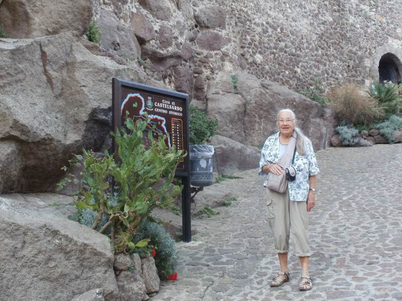 would fly home to Boston. We watched their plane take off and gradually become a speck in the darkening sky. Now it was just us again. Back we went to Bosa, where we stayed another week, resting and trying to recover from the respiratory virus that had been dogging us - and Astrid too - ever since Naples. And then it was time to do some more exploring. First, we went to the little town of Castelsardo on Sardinia's north coast. An ancient, medieval town on top of a hill, with a modern town below. | ![]() | |||||||||||||||||