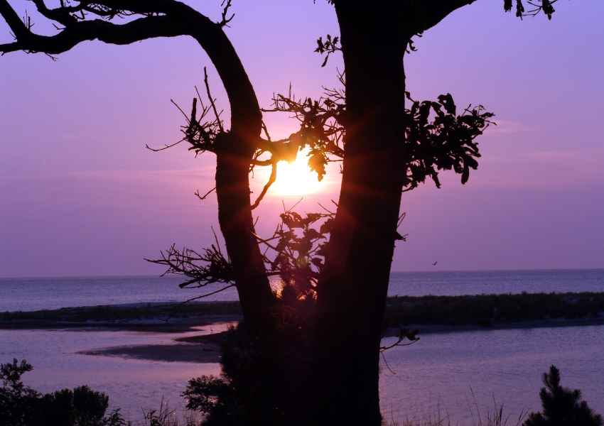 looking at the sea which today is a deep, dark blue and is shining and